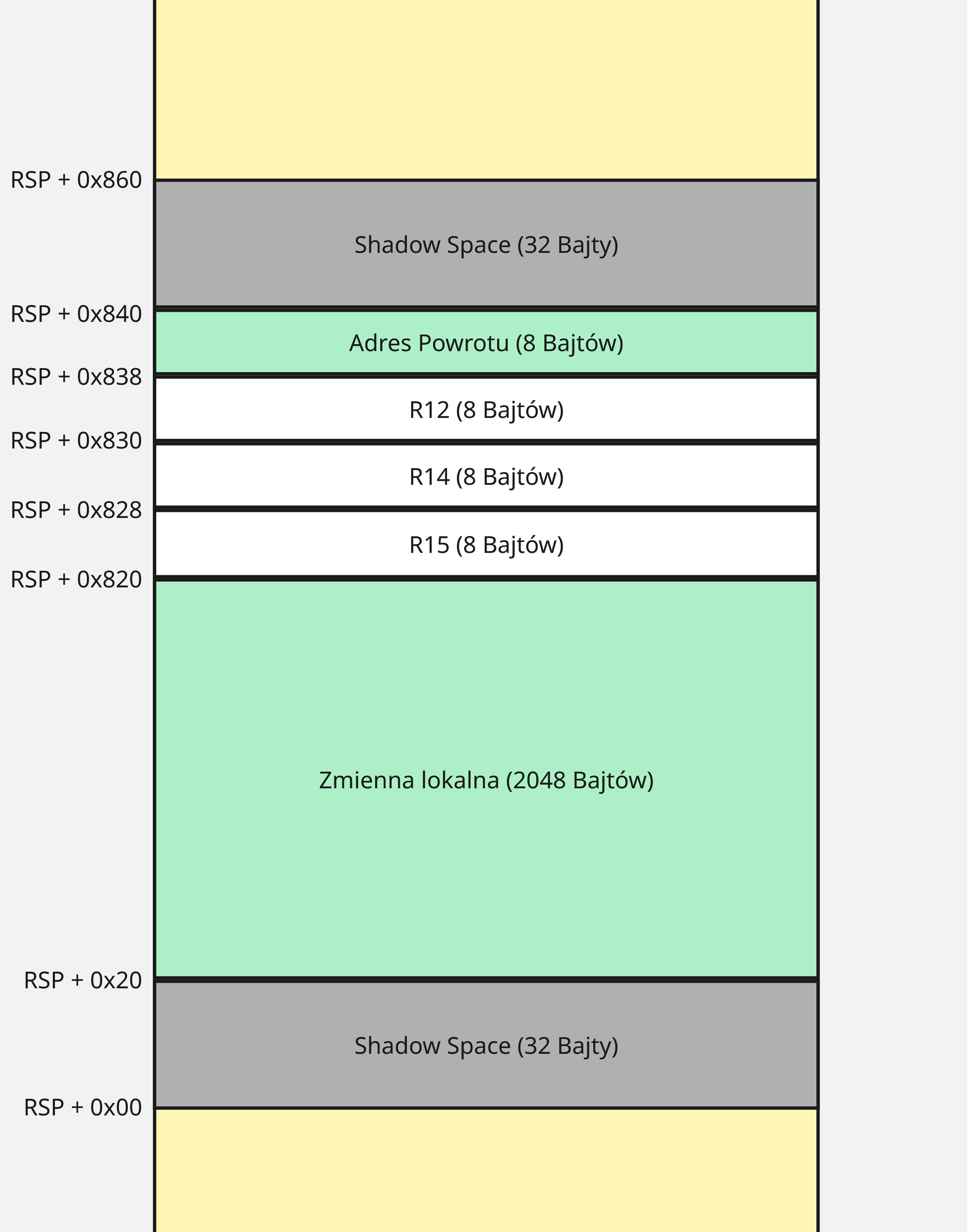 Uwzględniając wszystkie podane wcześniej rozkazy, stos przed wykonaniem memcpy wygląda następująco: